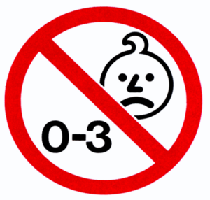 Safety warnings are obligatory for many types of toys including electric toys. For example, toys not suitable for children under 3 years old must include a warning stating “Not suitable for children under 36 months” or “Not suitable for children under three years” or a warning in the form of the graphic below. The warning shall be accompanied by a brief indication, which may appear in the instructions for use, of the specific hazard calling for this precaution.
